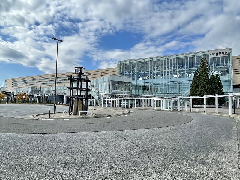 東北新幹線(2010年延伸)と北海道新幹線(2016年開通)が接続する「新青森駅」。青森駅まで奥羽本線で1駅5分。(2021.10)