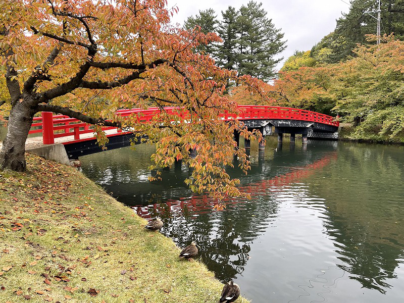 弘前藩津軽氏の居城「弘前城」を整備した桜の名所で知られる「弘前公園」。「弘前城」の正門「追手門」。(2021.10)