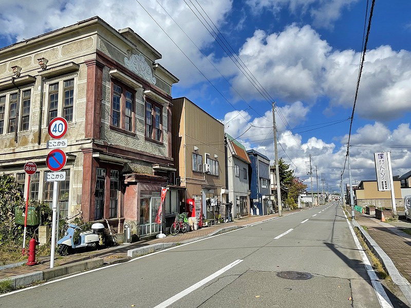 低層集合住宅が並ぶ村の中心街。(2025.9)