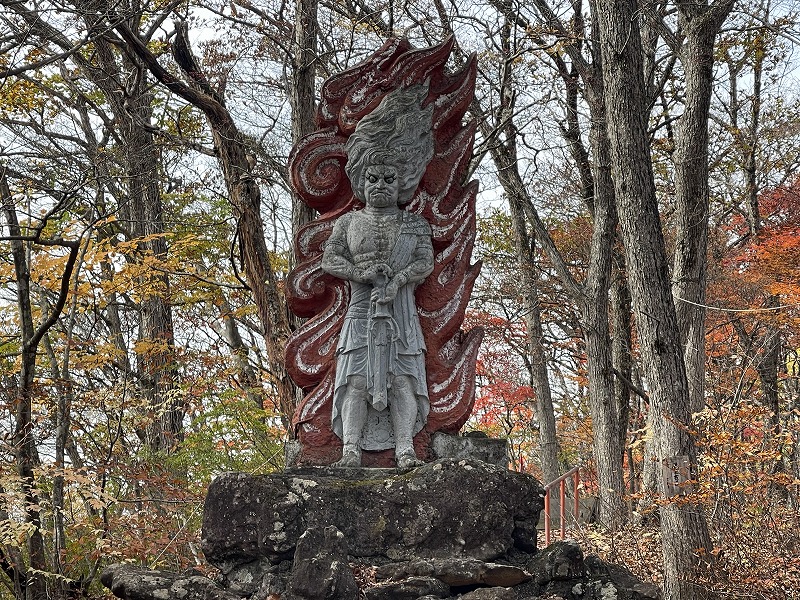 エコーライン沿いに建つ迫力満点の「蔵王不動尊」。(2023.11)