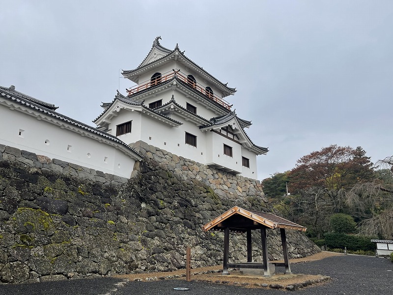 高さ約17mの「本丸北壁石垣」。四角く加工された切石を使用した布積みの美しい石垣。(2024.11)