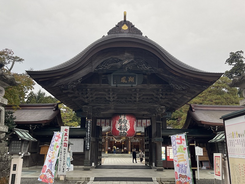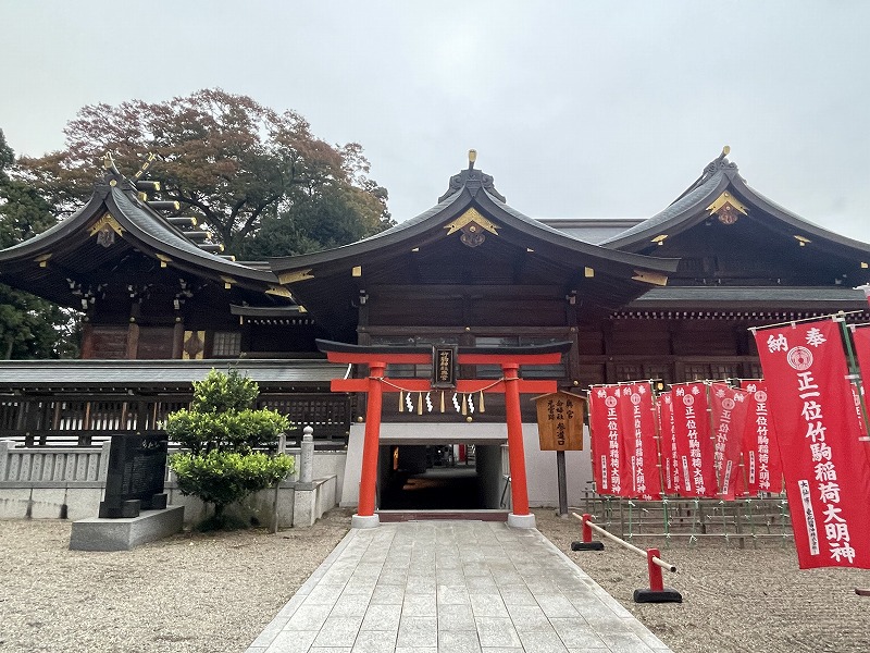 842年創建の「竹駒神社」。日本三大稲荷の一つに数えられる。1812年建立の「随神門」。(2023.11)