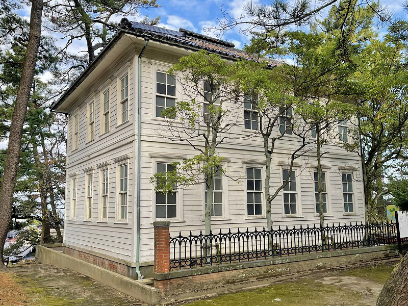 1878年に建てられた擬洋風建築「旧西置賜郡役所(小桜館)」。(2023.11)