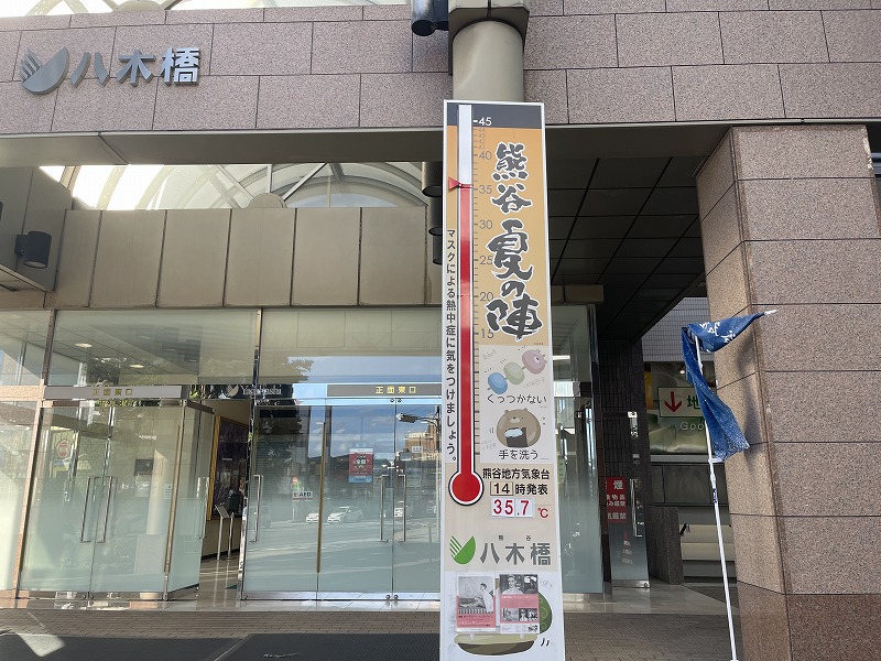 寄居駅北口前に立地する「寄居町役場」。(2022.8)