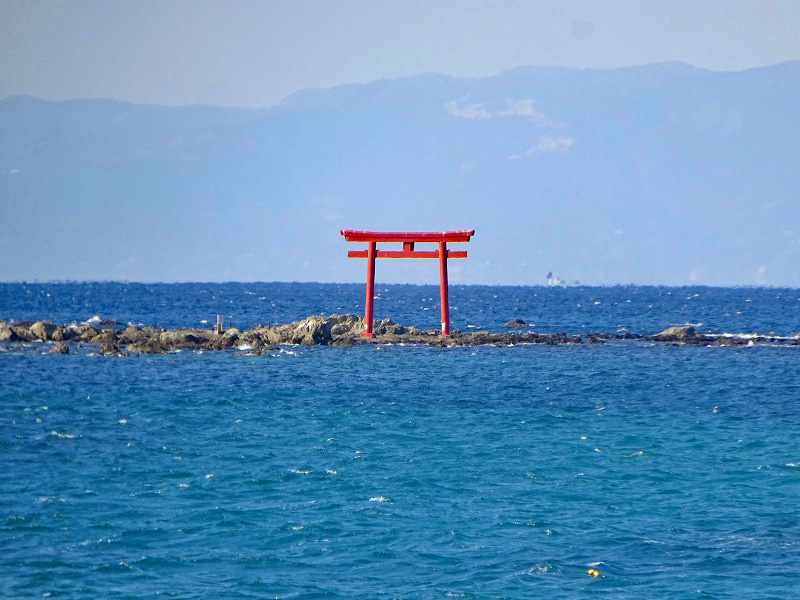初日の出の名勝として知られる「真鶴岬」海上の岩礁「三ツ石」。(2024.5)