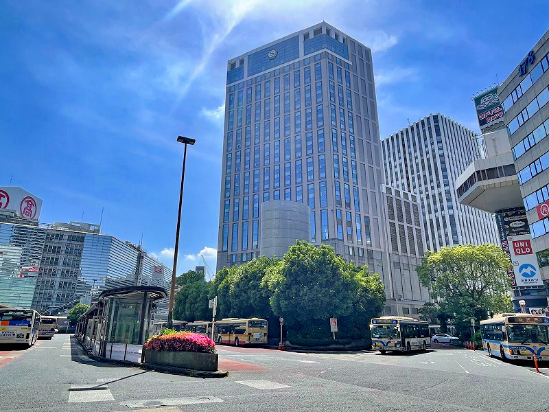 駅西口に1998年に開業した28階建ての「横浜ベイシェラトン ホテル&タワーズ」。相鉄グループが運営。(2024.5)