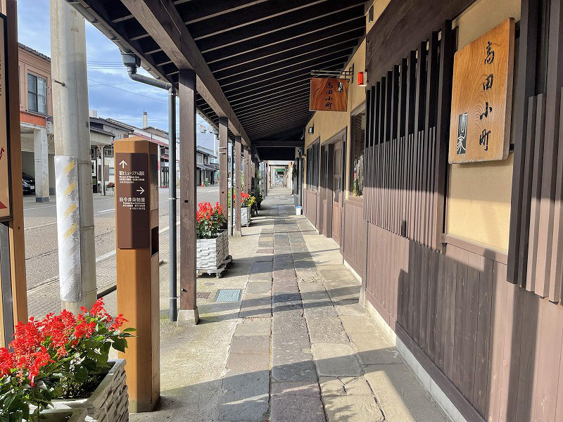 道路改良を機に建物の意匠の統一、色彩制限、雁木の設置など独自の建築協定を設けて徐々に雪国の宿場町の街並みを復元。(2021.9)