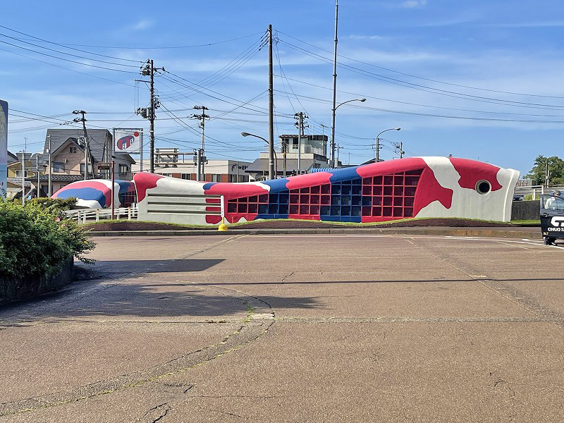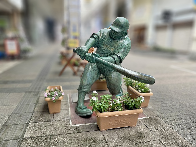 新潟市出身の漫画家水島新司の作品の登場人物の銅像が並ぶ「古町商店街」。ドカベン主人公の山田太郎。(2021.9)
