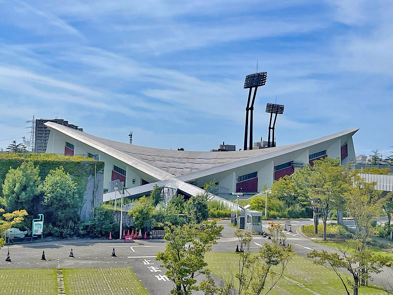 宮川英二設計による吊り屋根式の「新潟市体育館」。(2021.9)