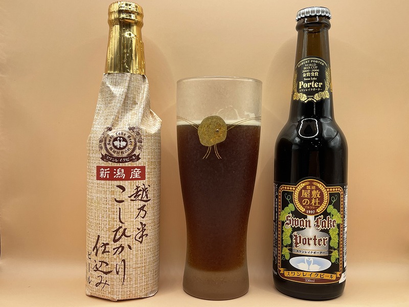 胎内川ほとりの胎内高原ビール園で醸造された「胎内高原ビール」。新潟県産コシヒカリを使用したお米を感じる味わいの「吟籠IPA」と爽やかな苦みの「ピルスナー」。(2022.12)