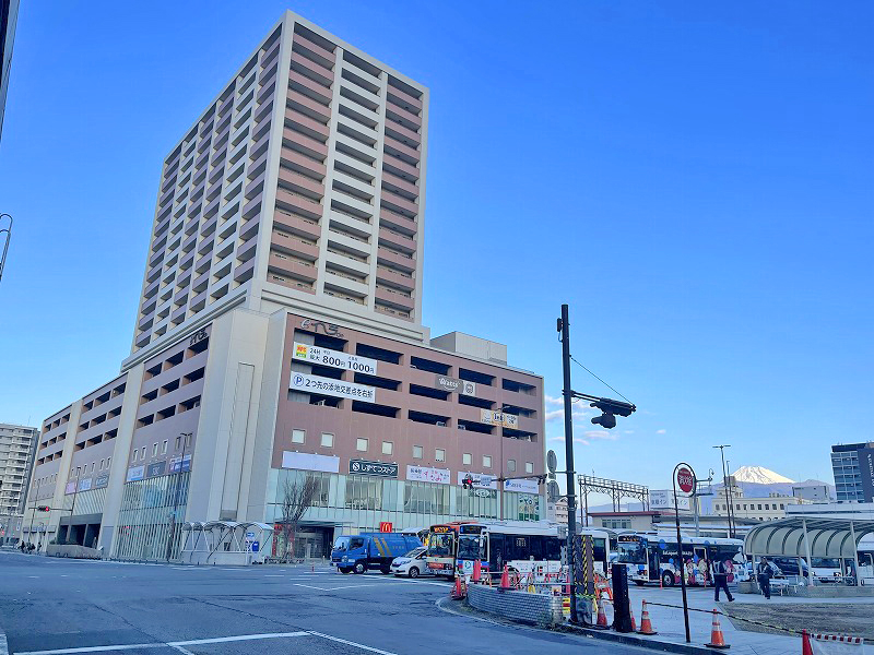 2012年に駅西口に竣工した高さ100m、25階建ての複合ビル「マークス・ザ・タワー清水(えじりあ)」。(2024.11)