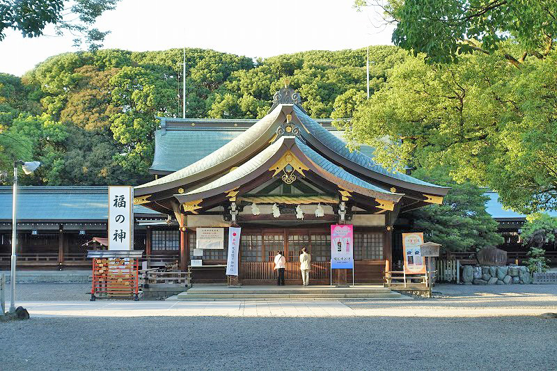 三種の神器の1つである草薙剣(くさなぎのつるぎ)を祀る「熱田神宮」。本殿前に建つ「拝殿」。(2023.8)