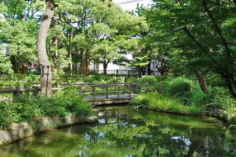 ソニーの工場の北西に隣接する「彦左公園」の「西長根池」。(2025.5)
