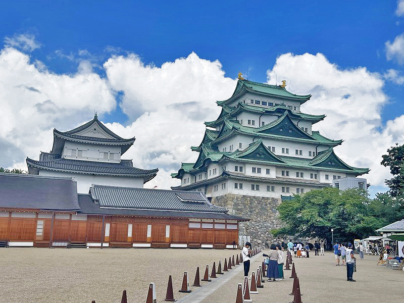 日本三大名城の一つ「名古屋城」。別名「金鯱城」。天守閣は1945年5月の名古屋大空襲で焼失し、1959年再建。(2023.8)