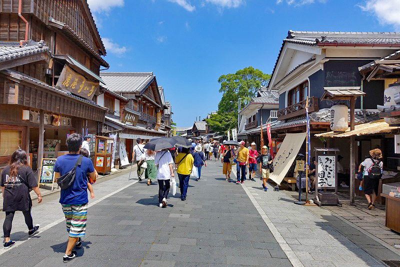 伊勢市駅から伊勢神宮外宮までの約500mを結ぶ「外宮(げぐう)参道」。(2019.8)