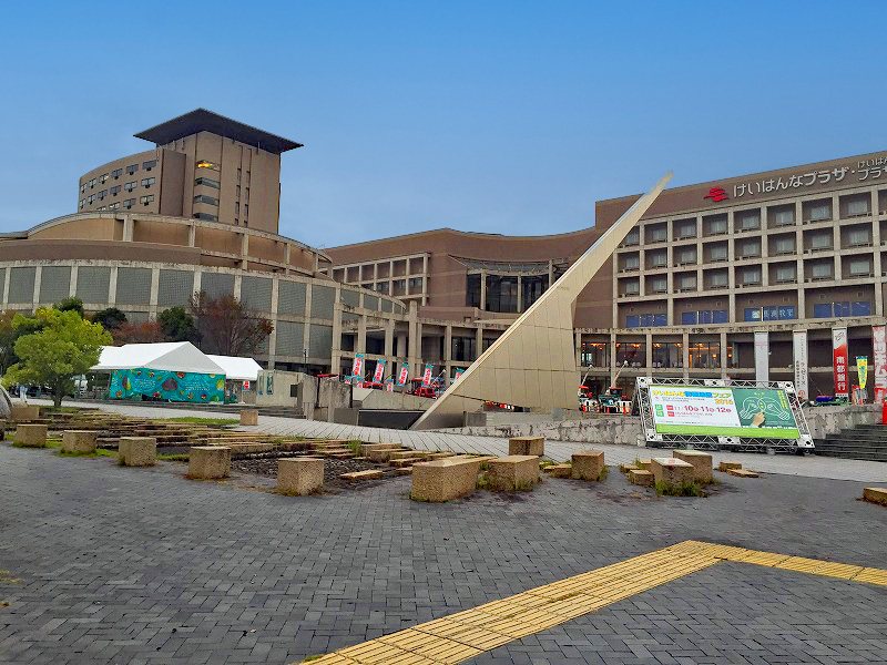 関西文化学術研究都市の文化学術研究交流施設「けいはんなプラザ」(1993年開業)。ラボ棟、ホールのほかホテル、飲食店などが入居。(2016.10)