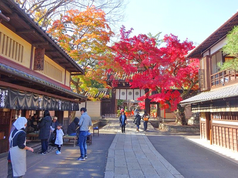 「三年坂(産寧坂)」を登りきると清水寺の参道「清水道」に出る。(2021.11)