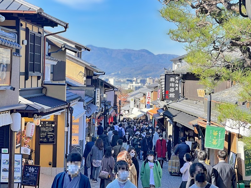 高台寺から八坂通まで続く「二年坂」。多くの土産物店が軒を連ねる。(2021.11)