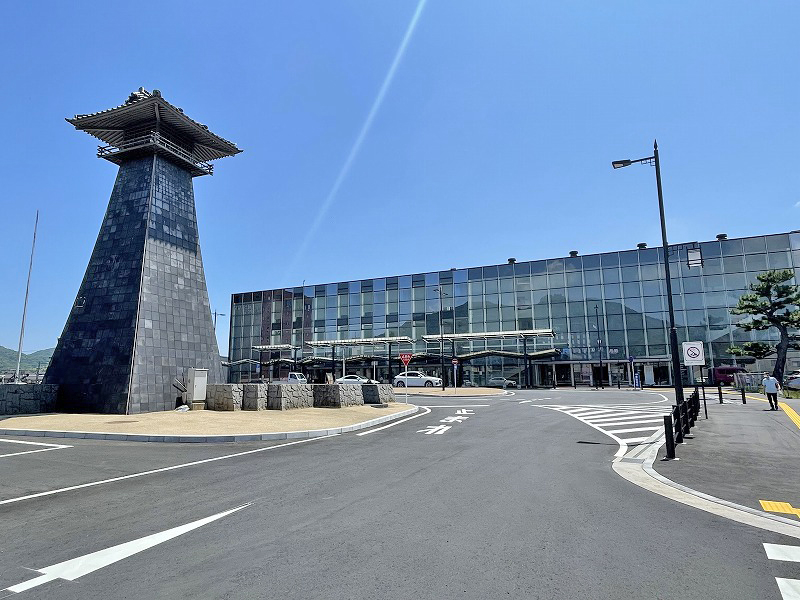 2015年に開業した道の駅「京丹波 味夢の里」。京都縦貫道京丹波PAからでも一般道からでもアクセス可。京丹波の山々をモチーフにした交流広場「京丹波プラザ」。(2022.10)
