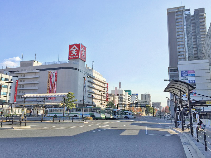 駅北口の複合ショッピングモール「パルティ・フジ坂」。(2025.11)