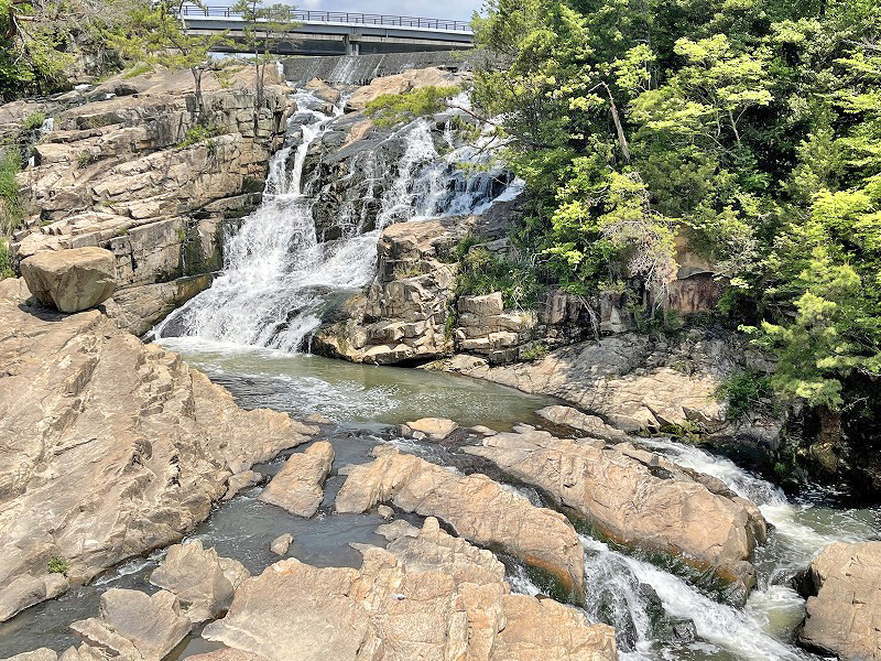 しなやかに峡内に流れる「姉妹滝」。(2025.11)
