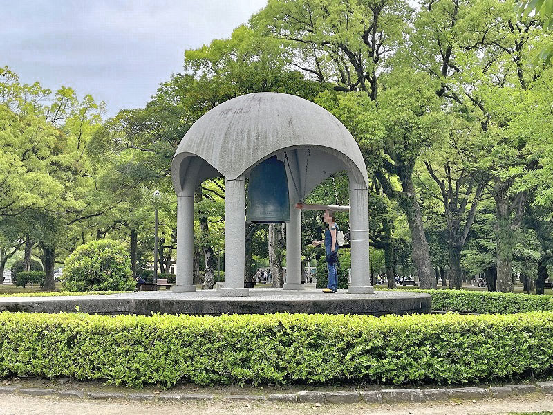 核兵器と戦争のない世界を目指して建立された梵鐘「平和の鐘」。この鐘の音が全世界に届くのはいつの日や。(2023.4)