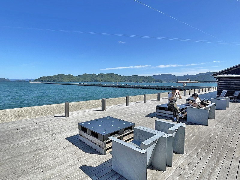 穏やかな「仙崎湾」に面したテラス。(2023.10)