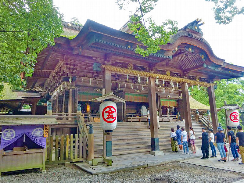 参拝客が列をなす檜皮葺きの「金刀比羅宮御本宮」。山麓から石段を上ること785段。(2018.9)