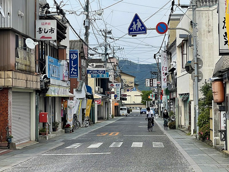 有田駅に続く「有田停車場線」の街並み。(2022.5)
