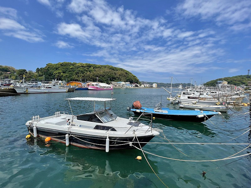 穏やかな「仮屋湾」の漁村。(2022.5)