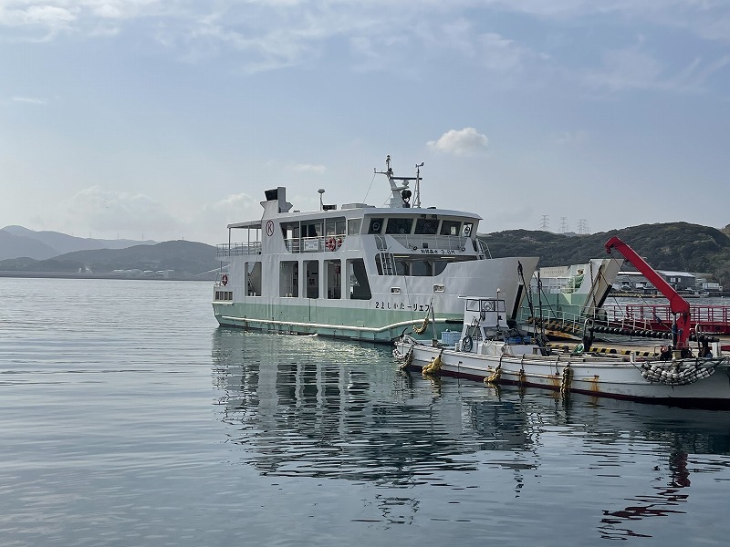 福江港と長崎港との間を約85分で結ぶ「九州商船」のジェットフォイル。(2023.3)