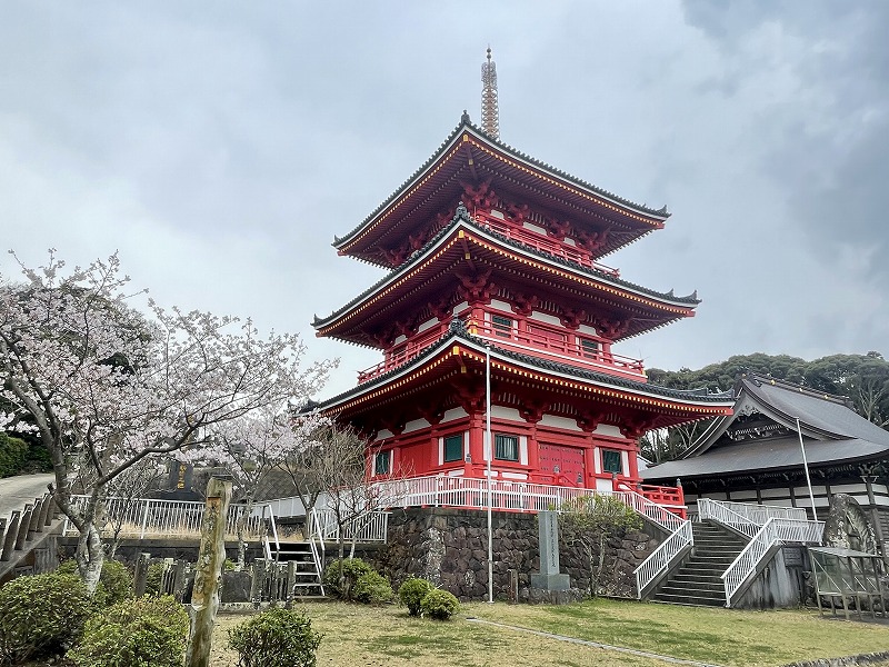大村湾に面した桜の名所「和三郎憩いの広場」。(2023.3)