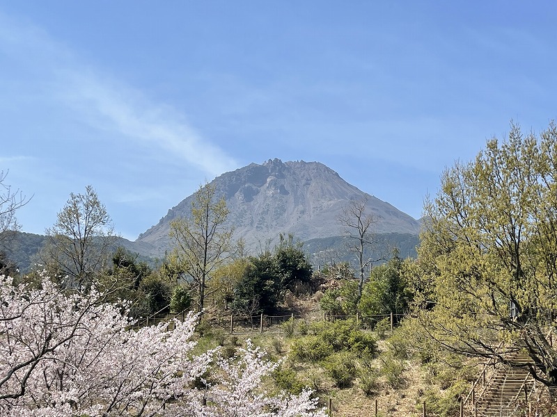 「仁田峠」から望む標高1331mの雲仙普賢岳「妙高岳」。「雲仙ロープウェイ」で山頂まで登れる。(2023.3)