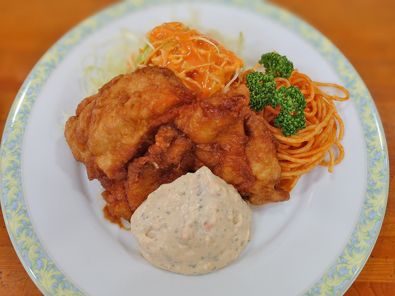 タルタルソース発祥の店「おぐら本店」の「チキン南蛮」。甘酢に漬けた揚げた若鶏の胸肉がタルタルソースに絶妙にマッチ。(2021.3)