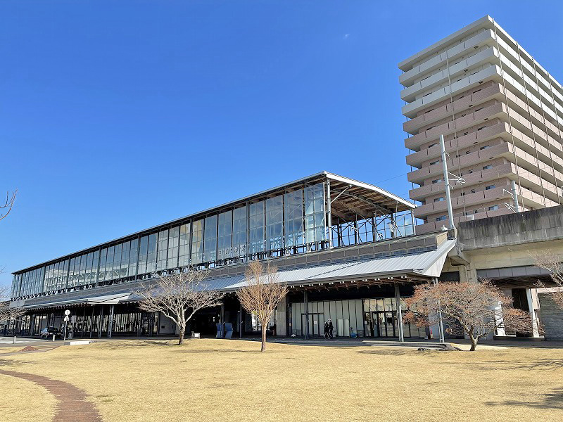 市の中心駅、日豊本線「延岡駅」。乾久美子設計による複合施設「エンクロス」を併設。(2021.3)