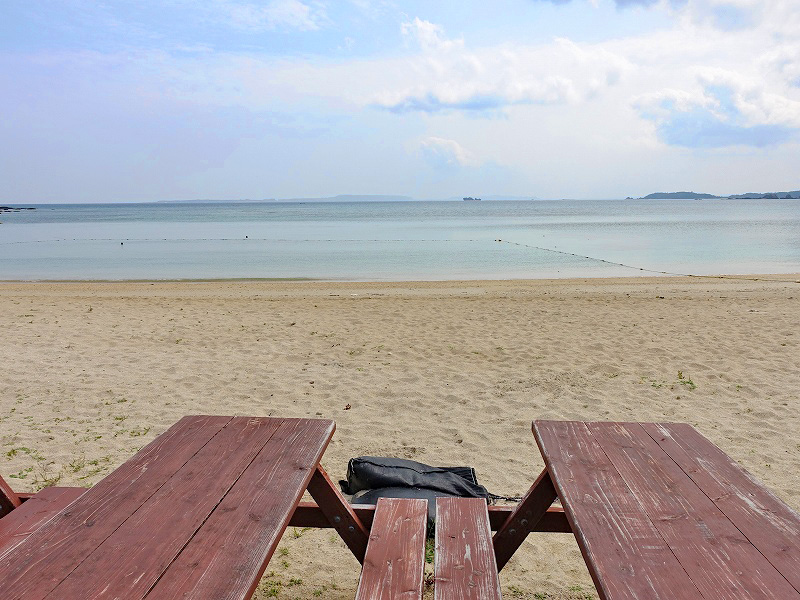 三日月状に白浜が広がる「比川浜」。(2023.2)