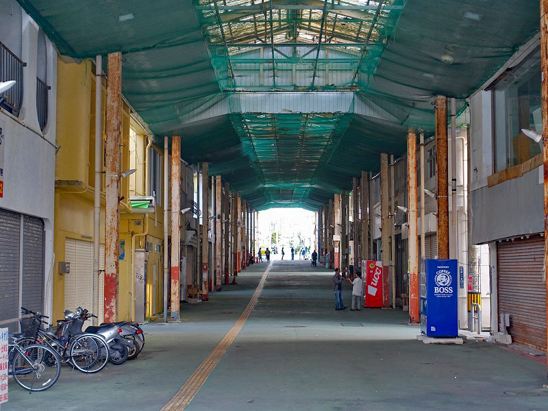 土産店や飲食店が軒を連ねるアーケード街「ユーグレナモール」。(2023.2)