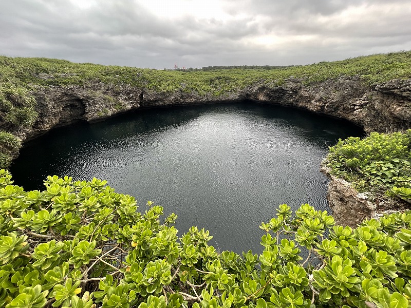 島を代表する絶景スポット「川平湾」の遠景。(2023.2)