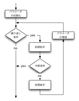また,パラメータの増減を書く位置が決まっていない. それは処理中のどこかに書かなければならない.