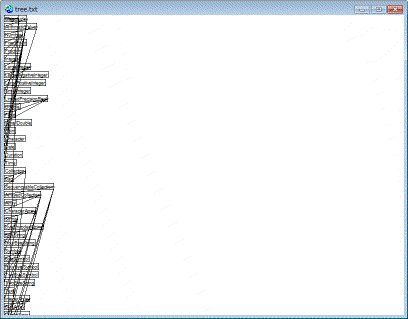 次のような木構造の集まりを表現したテキストファイルを読み込み、複数の木構造を樹状整列させて、一つのウィンドウの中に可視化すること。ここに単一の木構造・複数の木構造・枝分かれしたものが接合している木構造の例を示す。