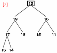 - step 7: 最後の要素 12 に注目し、子である 19, 16 と比較する。