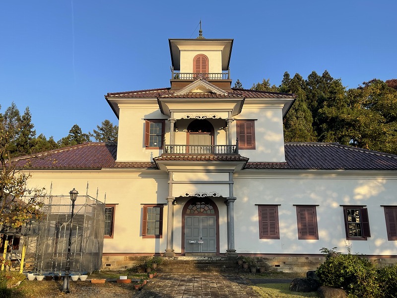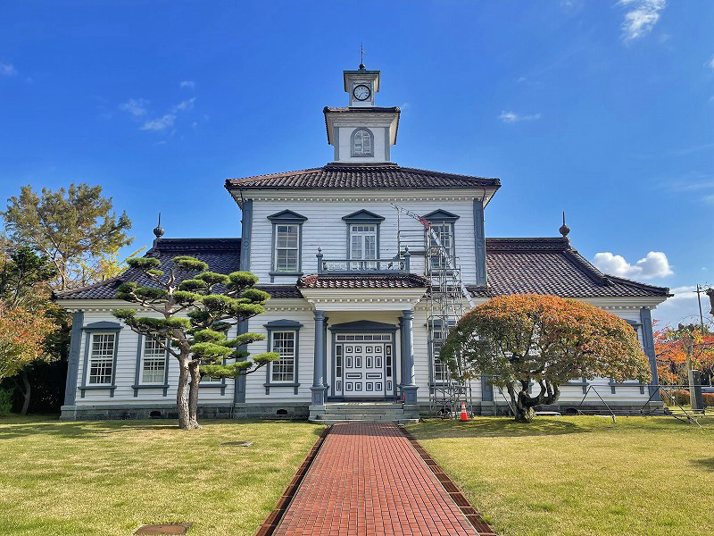 1878年に建てられた擬洋風建築「旧西置賜郡役所(小桜館)」。(2023.11)