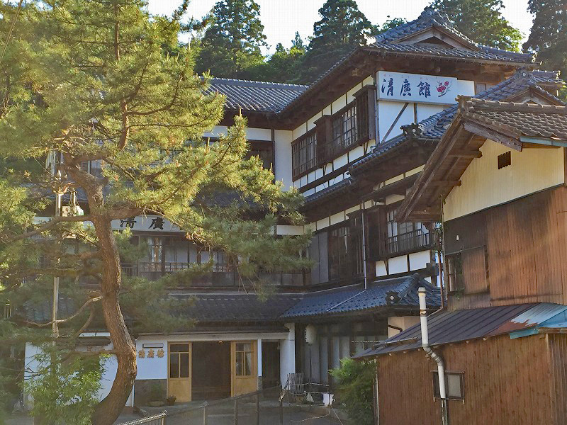 「出湯温泉」に構える開業300年、木造3階の「清廣館」。(2015.6)