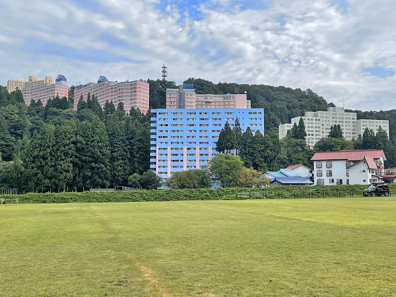 「岩原(いわっぱら)スキー場」周辺のリゾートマンション群。(2021.9)