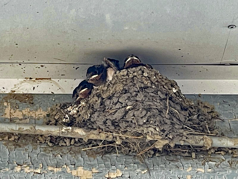 駅舎の屋根裏で親鳥の帰りを待つ子ツバメ。(2022.5)