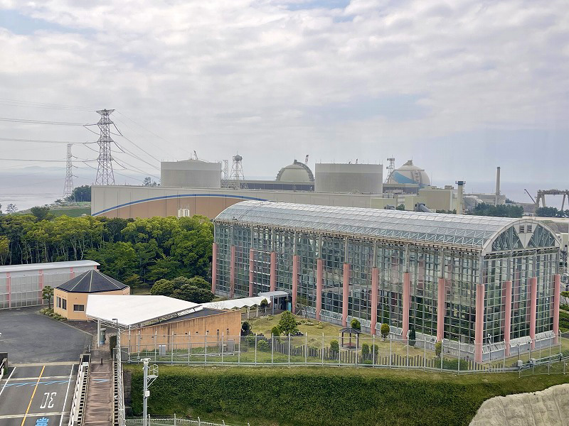 4階から間近に望む「九州電力玄海原子力発電所」の1~4号機。手前は「観賞用温室」。(2022.5)