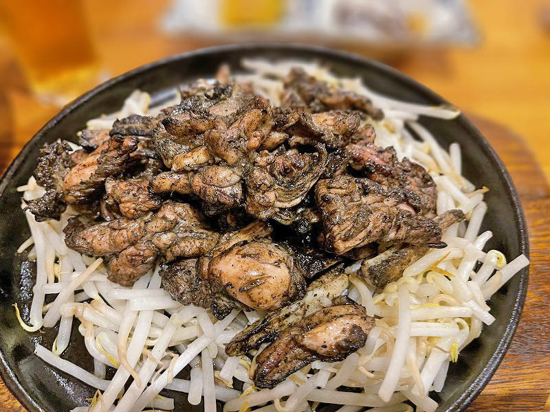 霧島鶏生産者が直営する鶏料理店「ぼっけもん」。モモ肉、軟骨、セセリを豪快に焼き上げた「ぼっけもん焼」。鶏の旨味が濃縮され、ジューシーな食感。(2021.3)