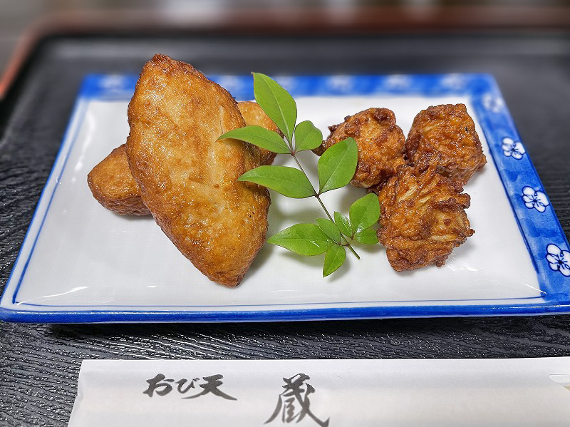 白身魚のすり身に豆腐や味噌、黒砂糖を合わせて揚げた、飫肥地方の郷土料理「おび天」。ふんわりとして甘みを含んだ「おび天蔵」の「おび天」。(2021.3)