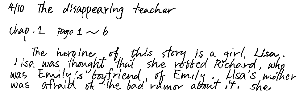 While the 40:1 ratio is arbitrary, we have found it to be a suitable figure, allowing for plot summaries with sufficient detail to prove that the book has been read, but short enough not to place an undue burden on the students. Nevertheless, for the first few weeks, the students generally find that the summarizing takes more time than the reading. This is due to their inexperience in both writing in general and summarizing in particular. Helgesen supports this, observing that the writing may well be more difficult that the reading itself. (p.31). Since the instructors at KSU for the most part cannot read Japanese, however, there is little choice in the matter.
