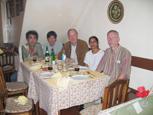 Tomarの町の小さなレストランにて 右からUlrich F. Hartl, Manajit Hartl, Walter Neupert, Rick Morimoto, Kaz Nagata |